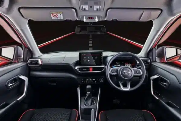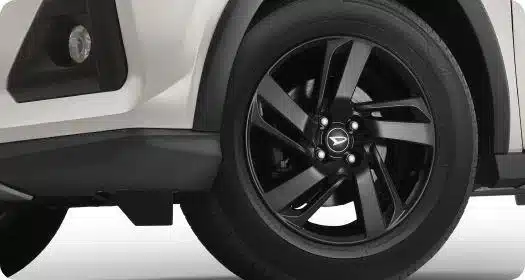 Penggunaan Headlight LED, DRL LED, LED Rear Light Combination dan Sequential Turning Light juga membuat tampilan eksterior Daihatsu Rocky semakin sporty. Anda juga akan mendapatkan spoiler depan, belakang, serta side body kit. Juga menggunakan velg 17 inchi berwarna hitam.